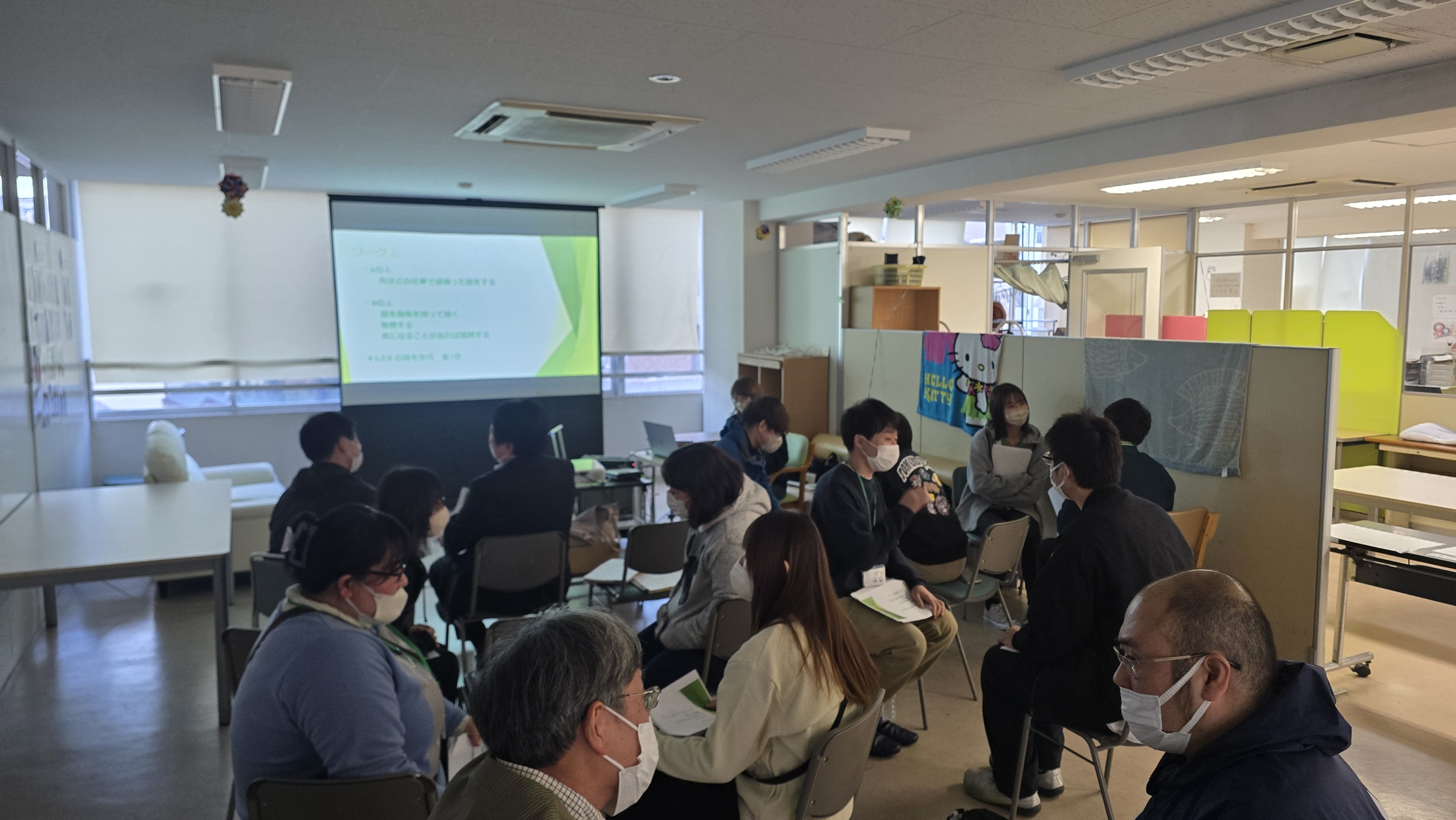 聴講した職員は、メモを取りながら真剣に耳を傾ける姿が印象的でした。発表者は資料を手に丁寧な説明を行い、質疑応答の時間も設けられ、活発な意見交換が行われました。また、大人数での講義形式だけでなく、テーブルを囲んでの小グループディスカッションも実施され、より深い学びと職員同士の連携強化を図ることができました。